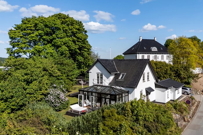 På førstesalen finder du endnu et badeværelse og tre rummelige værelser. Fra soveværelse er der fantastisk udsigt over by og skov fra den franske altan og endnu en udgang til en lille østvendt altan hvorfra du kan nyde morgensolen over Vejle fjord.
