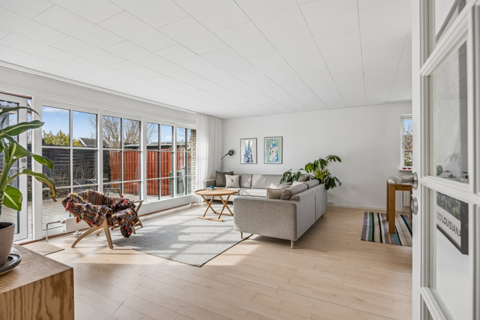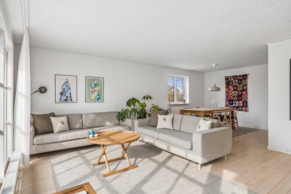 Indenfor får I 115 m2 med en planløsning, der gør det muligt at dyrke såvel samværet som privatlivet. Entréen tager imod med ro og orden, og herfra fordeler rummene sig naturligt. I den ene ende ligger tre værelser sammen med et badeværelse og et bryggers, der gør hverdagen ligetil med egen indgang. I den anden ende åbner hjemmet sig med et lyst og lækkert leverum, hvor køkken, spisestue og stue smelter sammen i ét, så samtalerne kan flyde lige så frit som lyset gennem de brede vinduespartier. Mulighederne for en tilbygning står ligeledes åbne, hvis I en dag vil tænke endnu større.