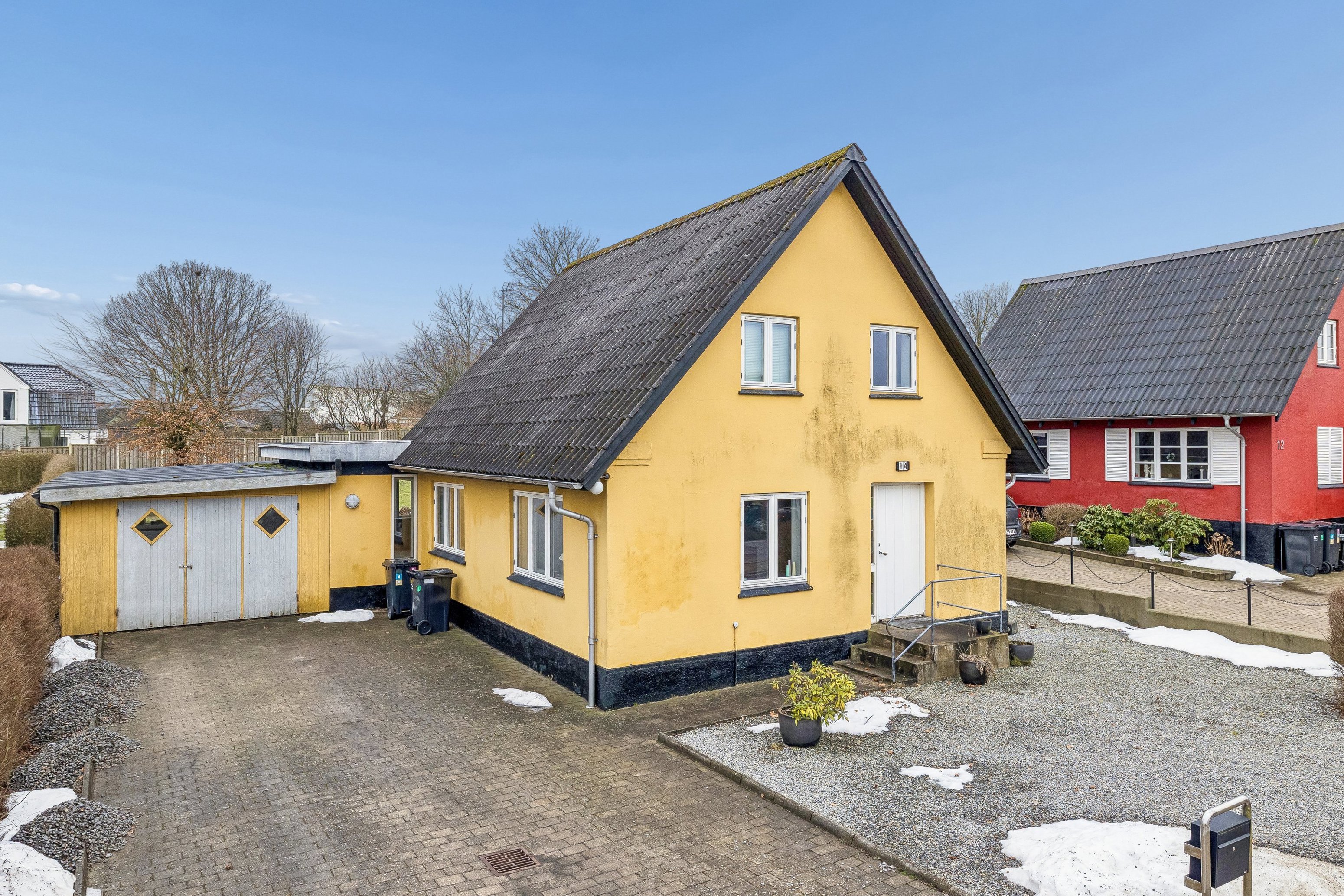 Boligen og den sammenbyggede garage er placeret forrest på den 877 m² store grund. Det betyder, at haven ligger dejligt ugeneret bag bygningerne, hvor I får en lukket og privat oase med terrasse – perfekt til sommerens grillmiddage, leg og afslapning. Garagen giver mange gode muligheder fx. parkering, hobbyaktiviteter eller ekstra opbevaring.