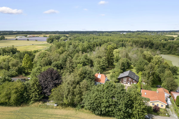 Ejendommens ydre er mindst lige så imponerende som indersiden. Den store indhegnede grund på hele 5.345 kvadratmeter er anlagt som en parklignende have, hvor man både kan finde fred og fordybelse samt plads til leg og aktiviteter. Haven grænser direkte ned til en lille sø og skaber en helt særlig naturskøn stemning, der får dig til at glemme, at du faktisk er ganske tæt på byens puls. Her kan du nyde morgenkaffen til fuglesang, tage en pause fra hverdagen i grønne omgivelser og opleve årstidernes skiften på nærmeste hold.