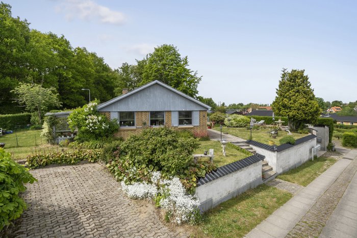 Vi byder velkommen til den veldisponerede villa, med flere gode parkeringsmuligheder, både foran boligen og et par trin op, samt i den tilhørende garage, hvor man kan gå tørskoet igennem en mindre "tunnel" til kælderen og videre til resten af huset.