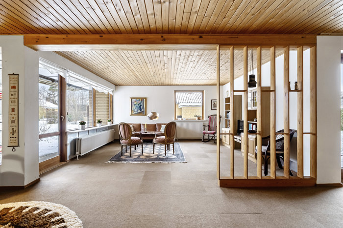 Boligen indeholder 4 gode værelser, herunder et arbejdes/kontor-værelse. Villaen rummer en stor stue med både spiseafdeling og opholdsstue, med direkte udgang til haven. Huset rummer et køkken med spiseplads og videre adgang til den store stue. Derudover har villaen 2 badeværelser, begge i original stil. Sidst indeholder villaen et bryggers med god opbevaringsplads.