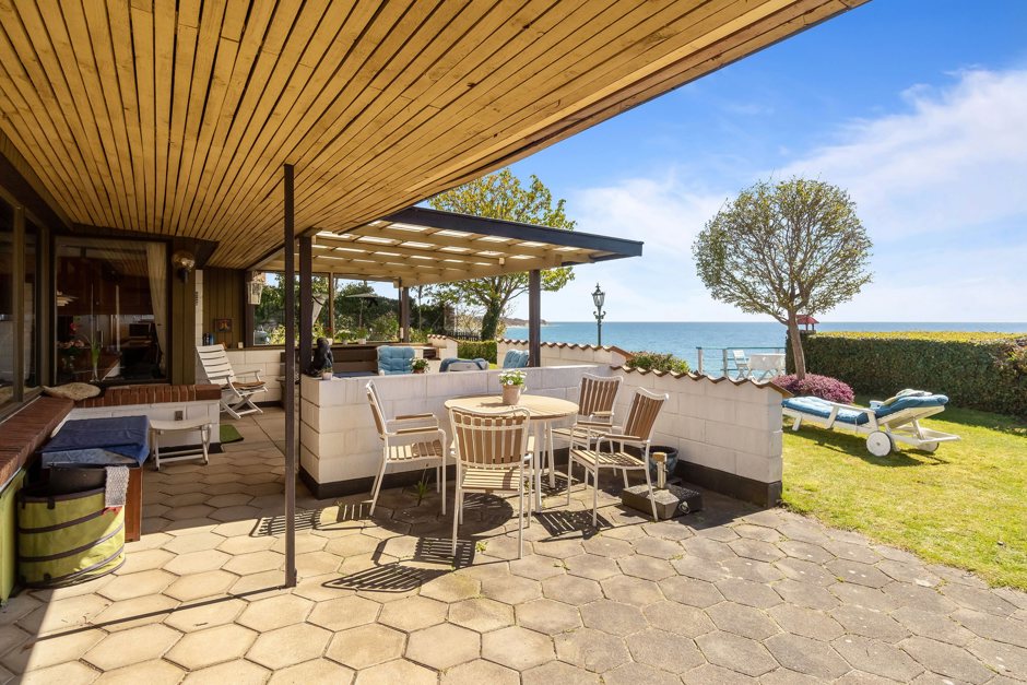 Fra haven fører en privat trappe direkte til vandet, hvor I kan lade tankerne vandre og opleve havets skiftende stemninger. Nede ved vandkanten indbyder de to terrasser til frokost under åben himmel med panoramaudsigt over havet — en oplevelse, der fuldender følelsen af eksklusiv kystlivsstil.