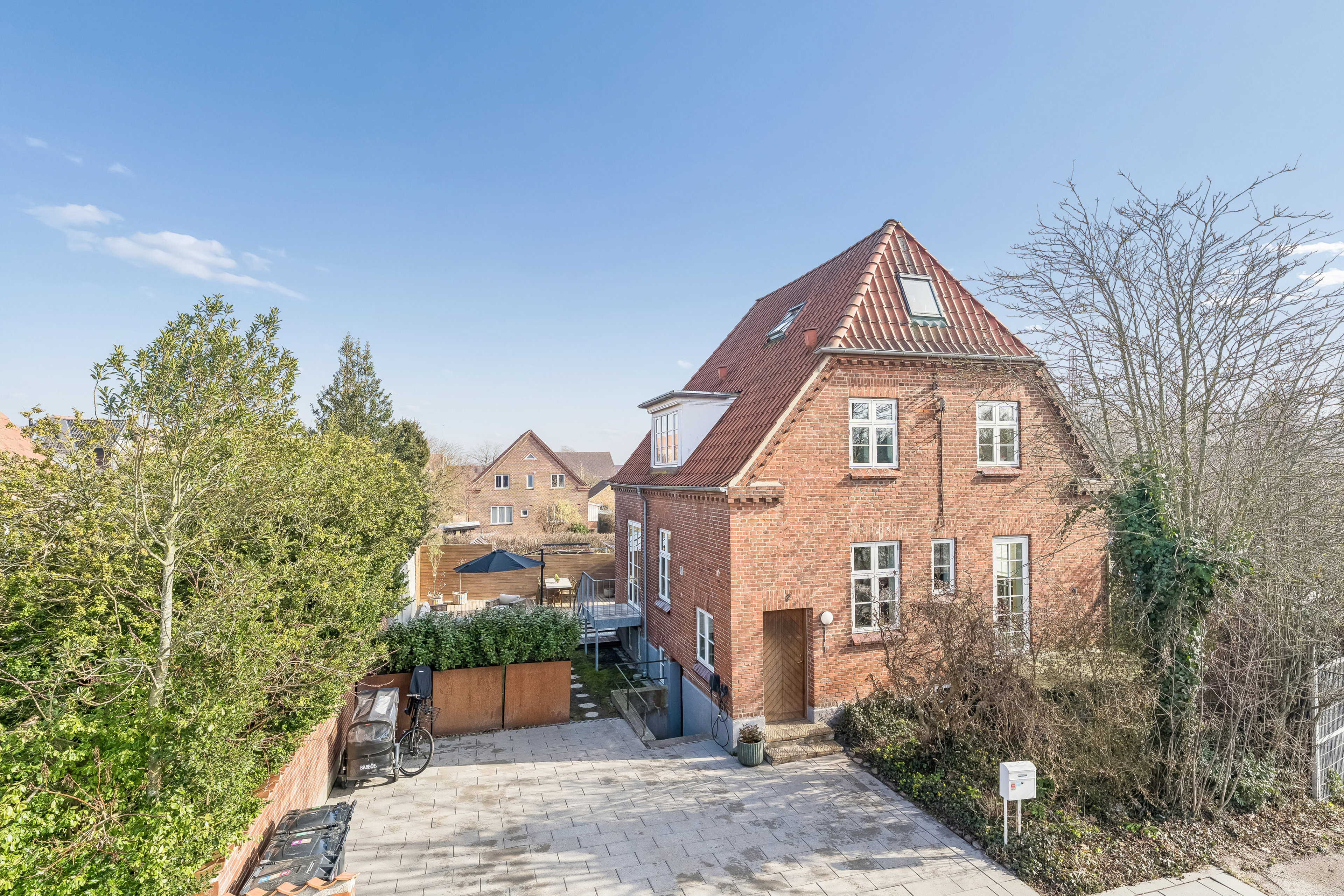 Udendørs er ejendommen ligeledes forbedret i de senere år med ny terrasse og indkørsel fra 2021 samt dobbeltdør og trappe til terrassen fra 2023, hvilket skaber en flot og naturlig forbindelse mellem hus og have.