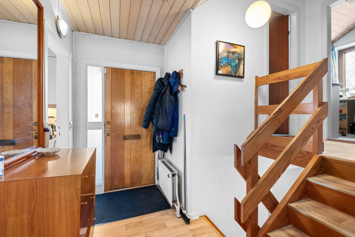 Boligen rummer i alt 3 soveværelser, hvoraf 2 af værelserne er placeret i forskudt niveau, op ad trappen, hvilket giver en spændende og charmerende planløsning. Her finder man også et badeværelse med ovenlysvindue, som sikrer et skønt lysindfald.