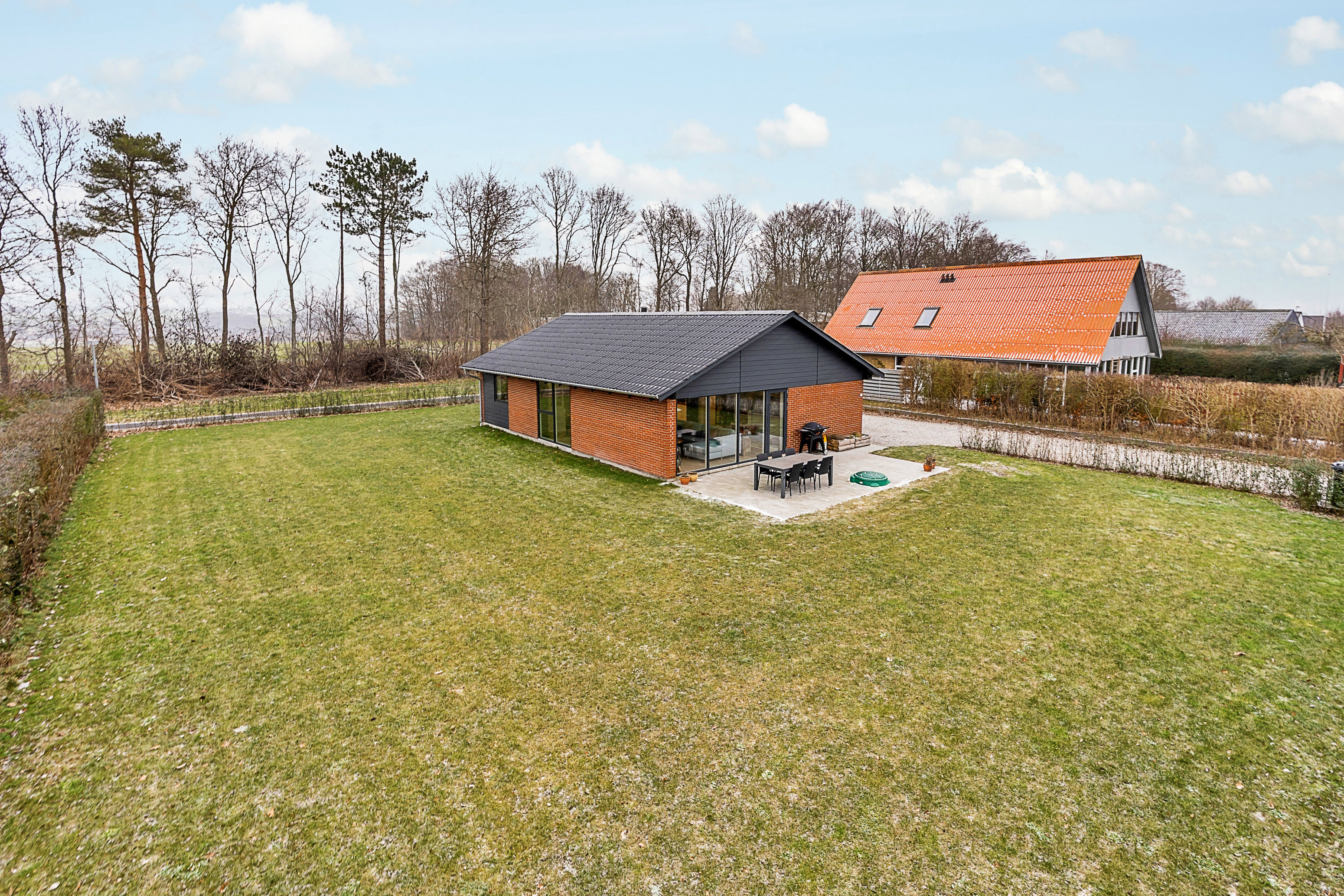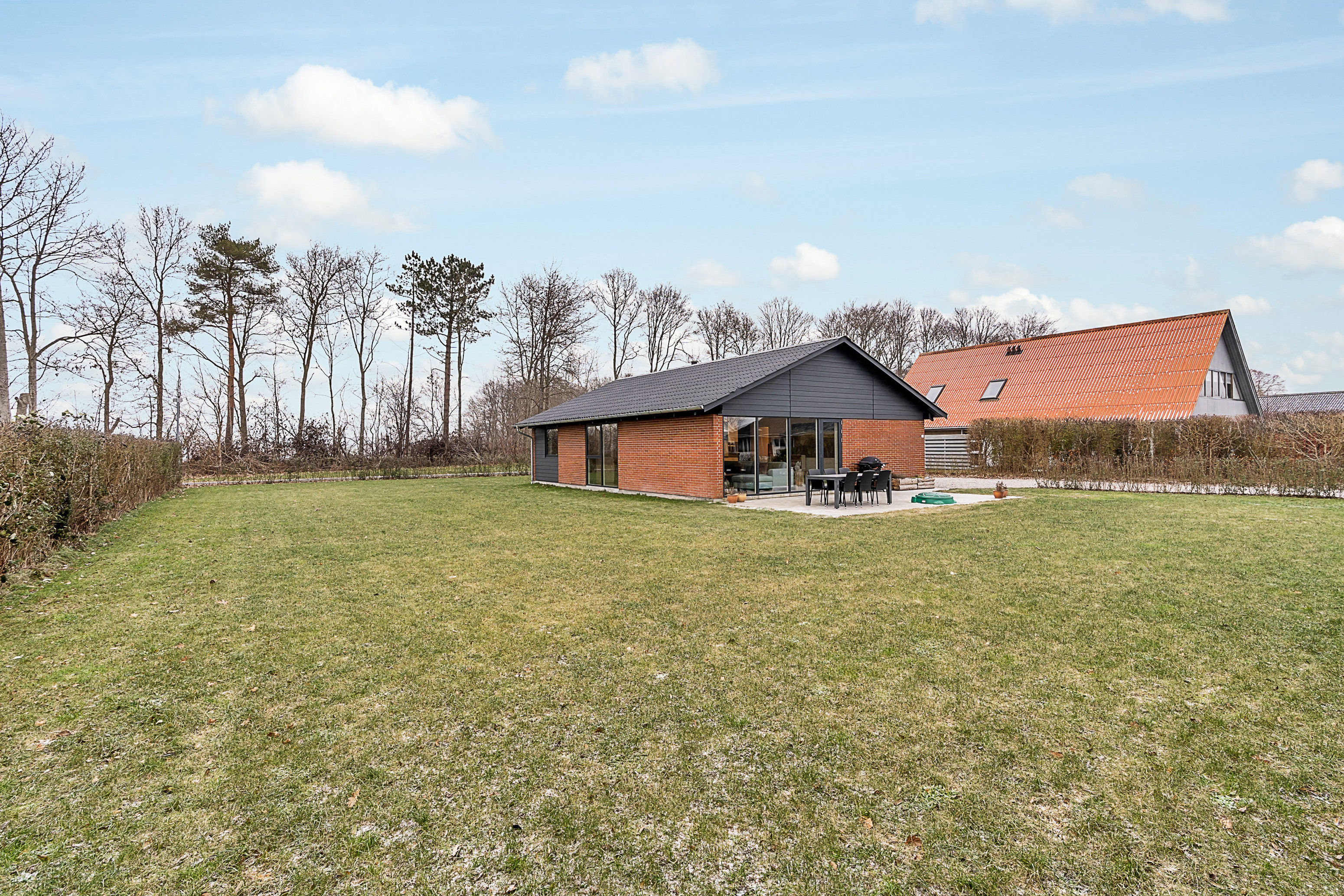 Grunden er på 930 m2 som består af indkørsel med plads til flere biler samt carport og redskabsrum, fin sydvendt terrasse samt regulær have bestående af græs som indbyder til leg og boldspil. Her er en fornemmelse af god plads rundt på grunden, da den grænser op til stisystem til både nord og øst og læbælte mod åbne marker til nord.