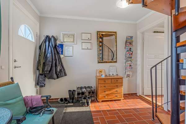 Udenfor venter en god og anvendelig grund med garage samt en stor udhusbygning, der rummer fyrrum, værksted og depotrum – ideelt til både opbevaring og hobbyprojekter.