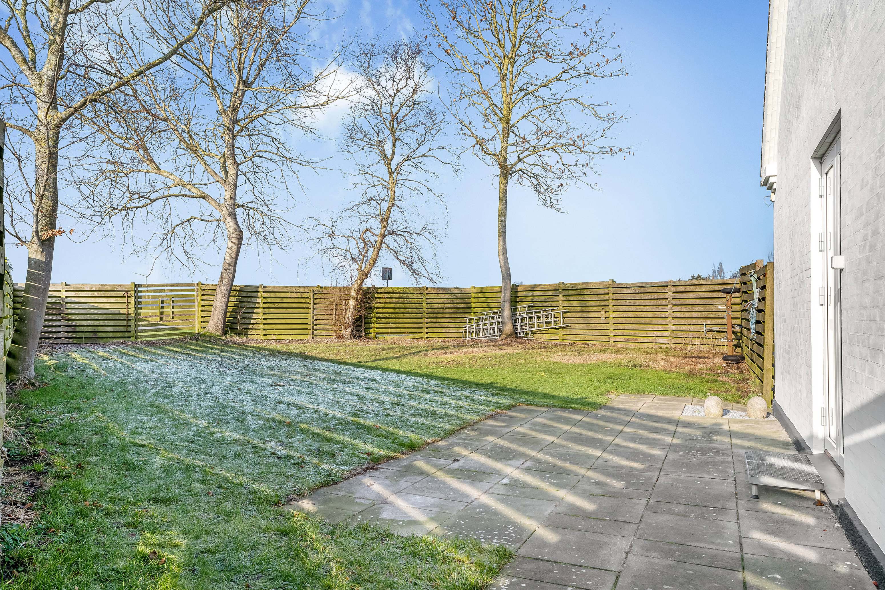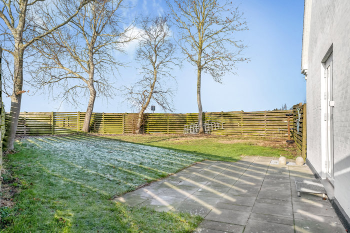 Haven er overskuelig og giver mulighed for udendørs hygge med familie og venner.