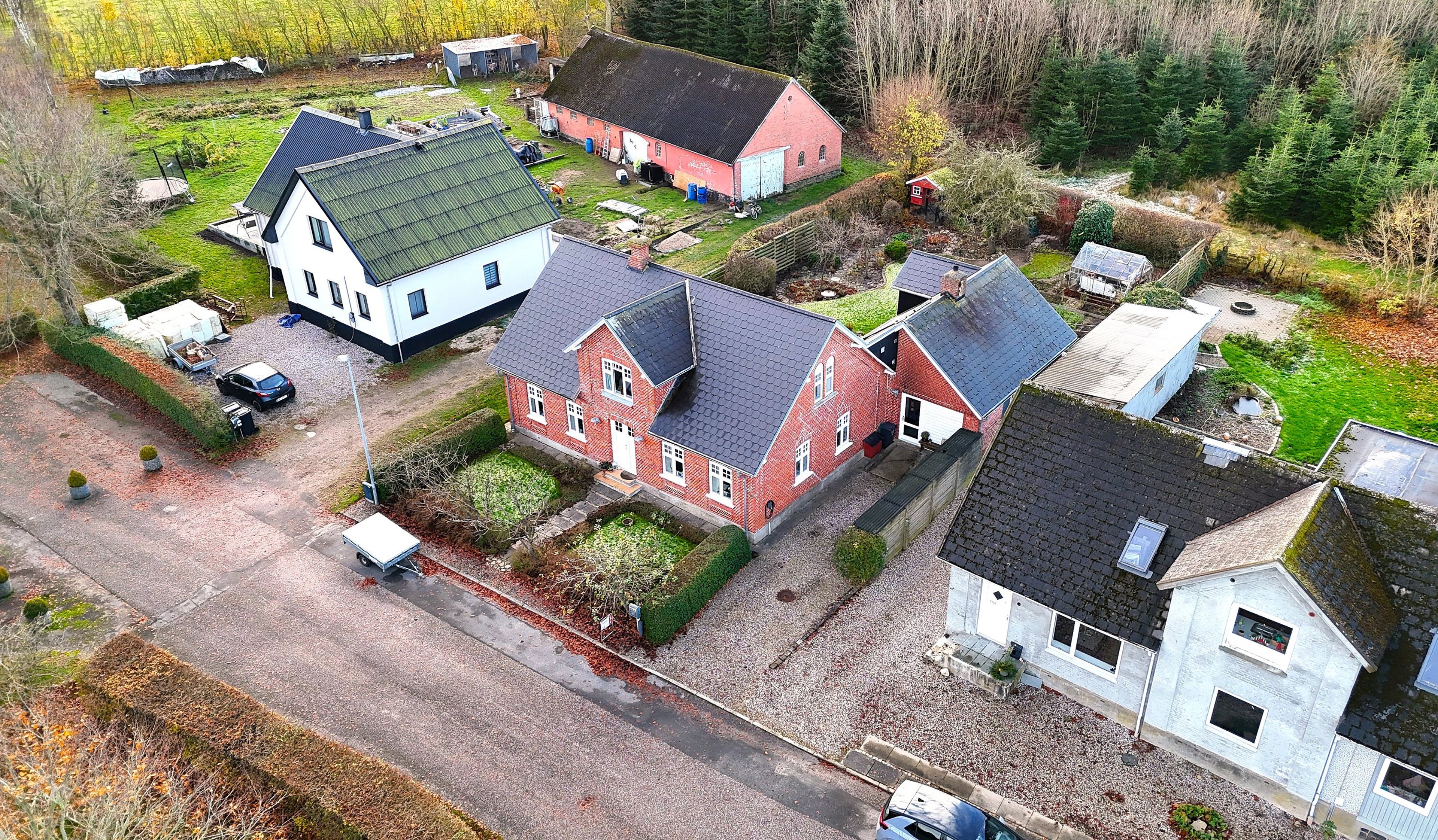 I hjertet af den hyggelige landsby Veddum ligger denne klassiske danske muremestervilla fra 1917 — en bolig, hvor både sjæl, kvalitet og omtanke mærkes i hver eneste detalje. Her får du et hjem, der er blevet nænsomt og respektfuldt renoveret, så de oprindelige byggeskikke lever videre side om side med tidssvarende løsninger. Det er et sted, hvor man straks fornemmer, at alt er passet på med omtanke – både ude og inde.