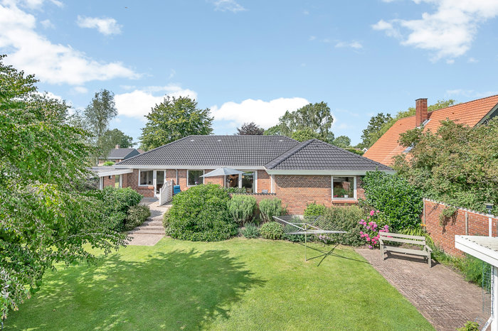 Boligen rummer hele 156 m² i ét plan. I forbindelse med en ombygning i 1990’erne blev skabt et stort, indbydende alrum med adgang til stuen via franske døre. En ramme for den daglige tilværelse, der bare skal opleves. Huset har ikke mindre end 5 værelser, hvoraf det ene kan fungere som gæsteværelse med separat indgang.