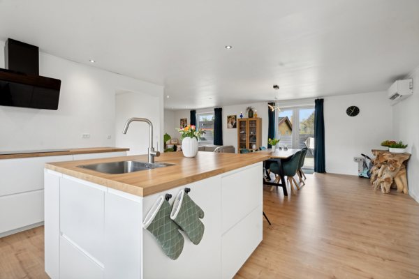 Her er I ikke alene tæt på både hverdagens gøremål og områdets flotte natur, men I kan også se frem til en velkomponeret planløsning i form af et stort, åbent opholdsrum og tre regulære værelser, og har I behov for mere, kan walk-in-rummet ved soveværelset evt. fungere som ekstra værelse/kontor.