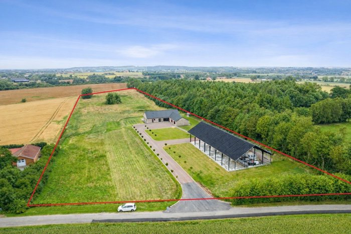 Nyopført eksklusiv lystejendom med 489 m2 stålhal og 2.5 Ha