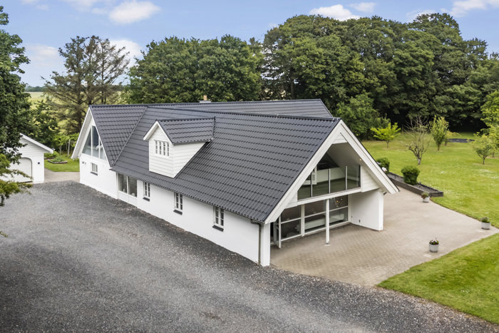 Boligen rummer hele 281 m² fordelt på seks gode værelser, et lækkert køkkenalrum, en imponerende stue med synlige bjælker og et gennemgående lyst og venligt udtryk. Her får du en bolig, hvor alt er tænkt i både funktionalitet og æstetik – og hvor renoveringerne løfter ejendommen til nutidens standarder.