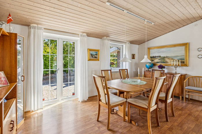 Indendørs mødes du af en indflytningsklar bolig med energimærke C, fjernvarme og brændeovn, der sikrer en behagelig varmeøkonomi. Køkken og opholdsrum har et lyst og indbydende udtryk, og planløsningen gør huset særligt velegnet til børnefamilier eller par, der ønsker god plads.