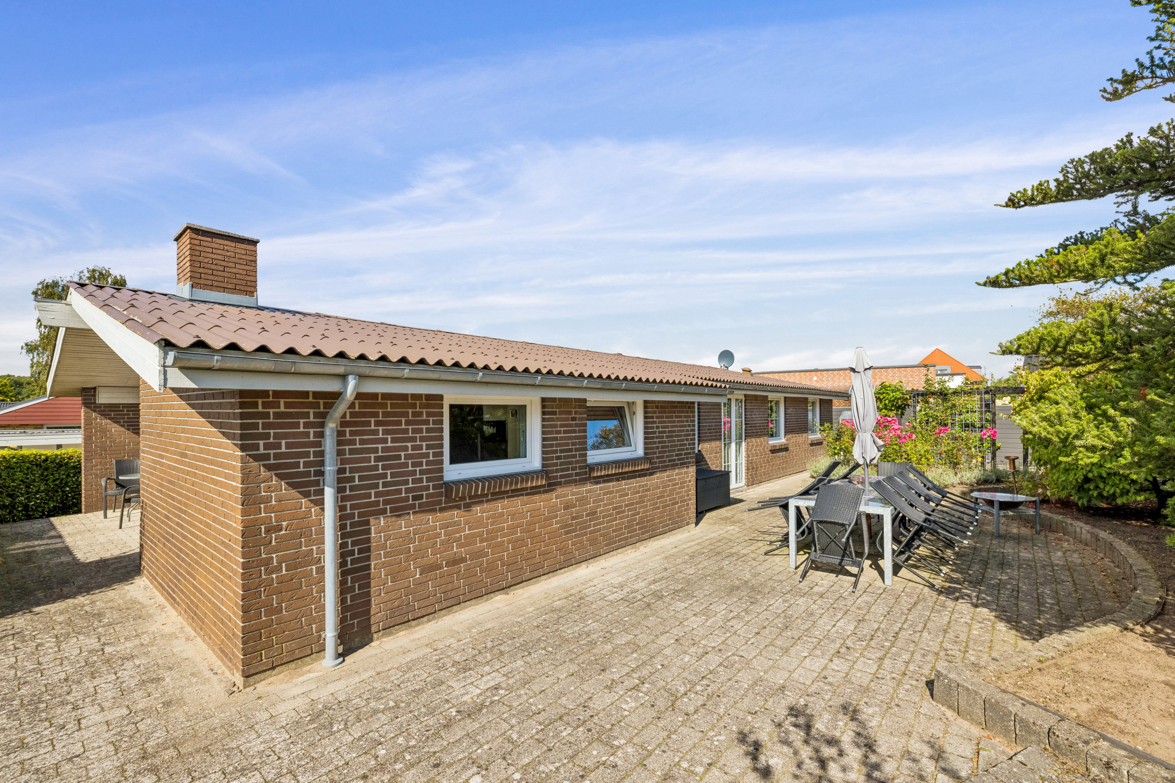 Uderummene er noget helt særligt: Foran boligen finder du et lukket og privat gårdhavemiljø, perfekt til morgenkaffen eller hyggelige stunder i fred og ro. Bagtil venter en have designet af en norsk havearkitekt, hvor grønne rum, terrasser og små kroge skaber indbydende rammer til udeliv året rundt. Hertil kommer nyere brænde- og cykelskur samt ekstra parkeringsplads til trailer, campingvogn eller autocamper.