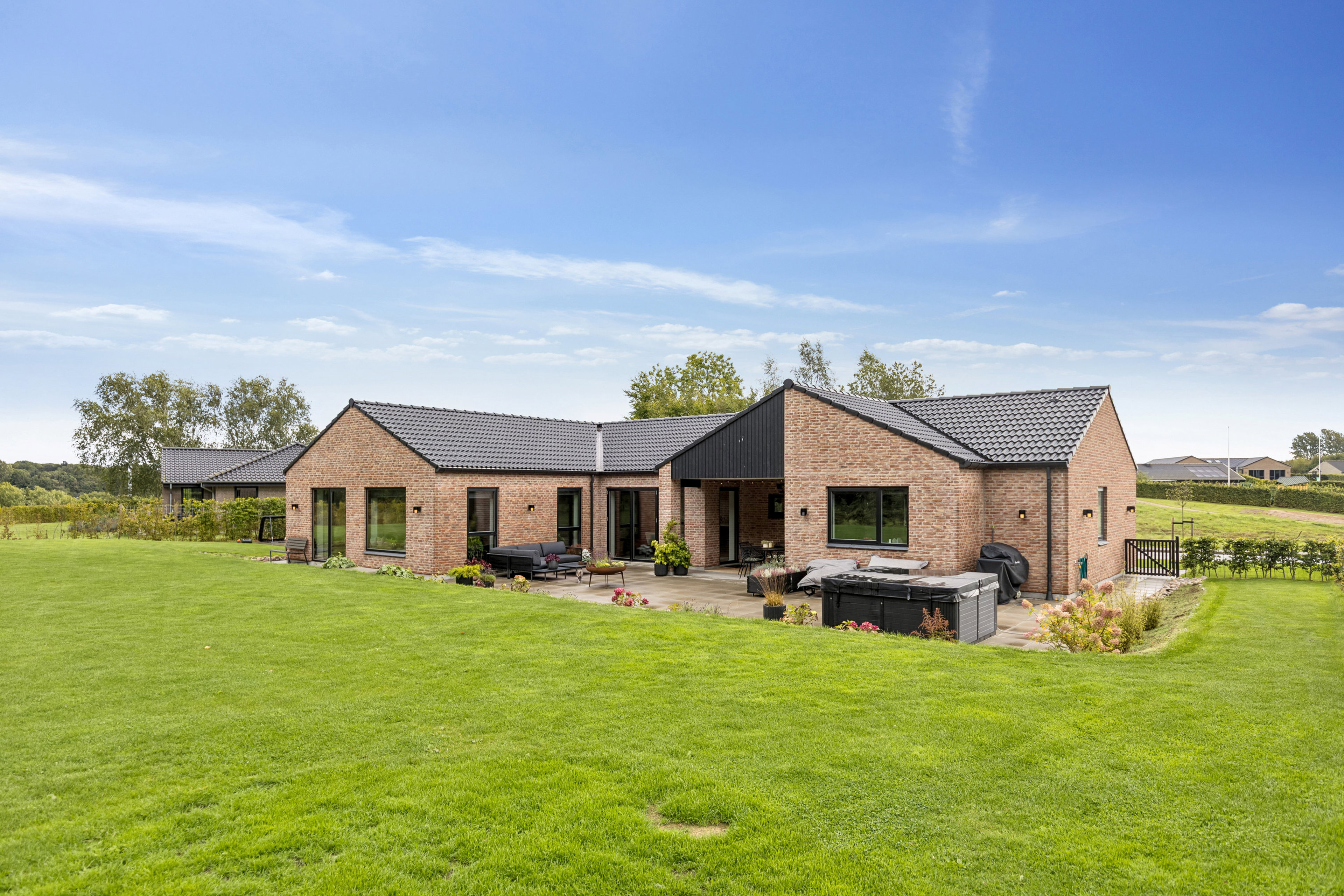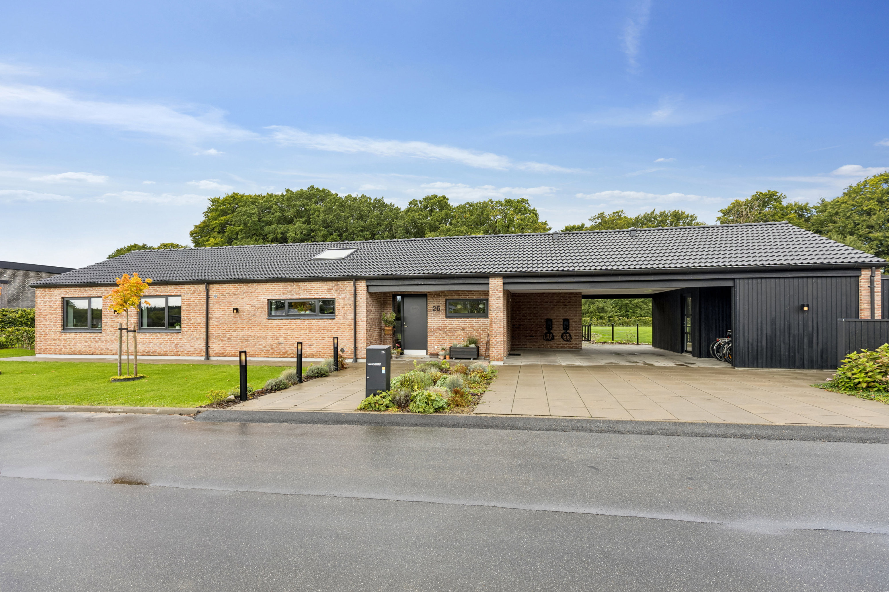Vinkelgårdsvej 26, 6040 Egtved er et helt igennem moderne familievenligt hjem med en skøn og naturrig beliggenhed, som inviterer til ro og hverdagsliv i skøn harmoni med omgivelserne. Ejendommen er opført i 2022 og fremstår lys og indbydende. Boligarealet udgør ca. 190 m² plus integreret carport på ca. 51 m² og udhus på ca. 17 m². Alt er ét niveau – nem og praktisk indretning med gennemtænkte funktioner.
