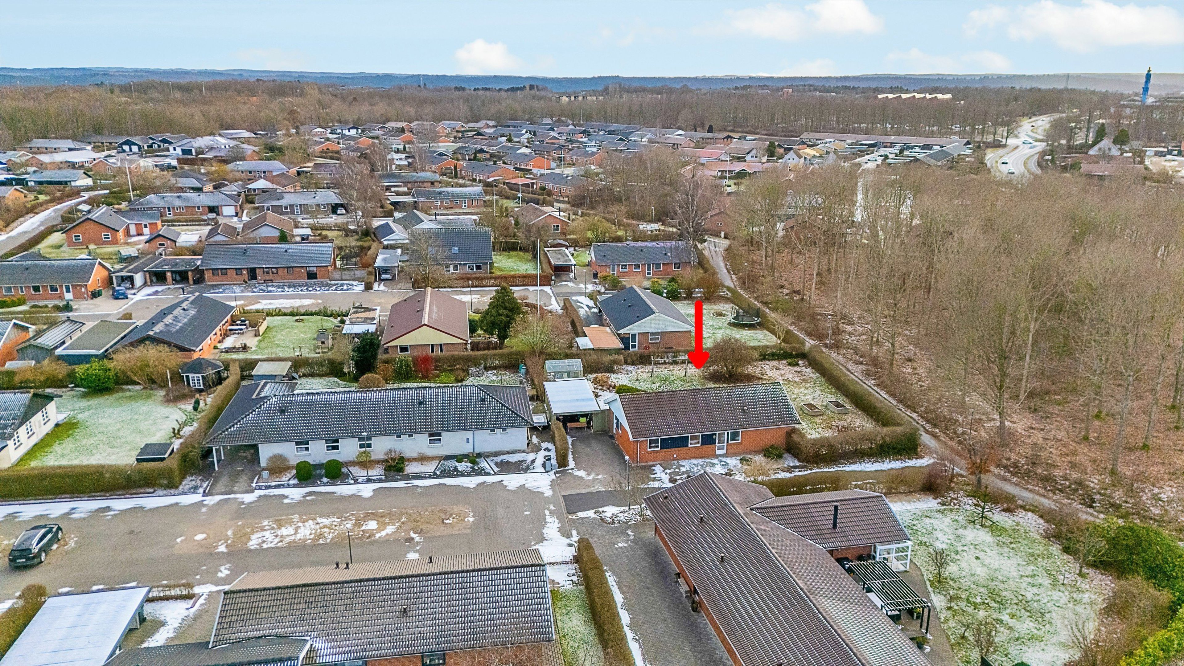 På den anden side af hækken mod vest bliver du nabo til det lille læbælte, der giver fornemmelsen af at bo lige op til skoven og skaber ekstra luft omkring huset.