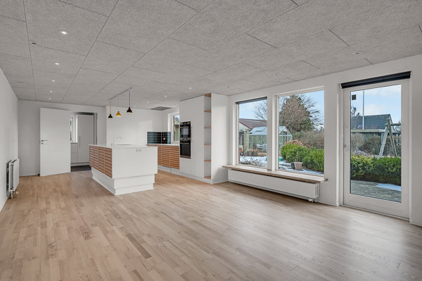 Dertil kommer en lang række øvrige opdateringer, der tilsammen skaber et lyst, moderne og komplet indflytningsklart hjem. Samlingspunktet er det store køkken-alrum i åben forbindelse med stuen – fra køkkenet er der adgang til et rummeligt bryggers med god skabsplads, og fra stuen tilgås en stik sydvendt terrasse. Boligen rummer også tre fine værelser og et badeværelse foruden entréen. De to sidstnævnte rum er også istandsat i 2021.