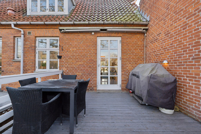 Haven: Haven fremstår som en ugeneret og stemningsfuld oase, hvor opvoksede træer og velvalgt beplantning skaber en særlig ro og en udpræget følelse af privatliv. Uderummet er disponeret med flere hyggelige kroge, der giver mulighed for både sol og skygge dagen igennem. Særligt den hævede terrasse i direkte tilknytning til huset danner ideelle rammer for afslappede stunder og hyggelige sammenkomster i sommermånederne. I forhaven findes en praktisk indkørsel med adgang til den integrerede garage samt stenbelagt terrasse med direkte udgang fra en af stuerne. Terrassen er elegant omkranset af en flot, tæt bøgehæk, som bidrager til både afskærmning og en harmonisk helhed. Samlet set fremstår haven som et gennemført og velanlagt areal, hvor funktionalitet og privatliv går hånd i hånd.