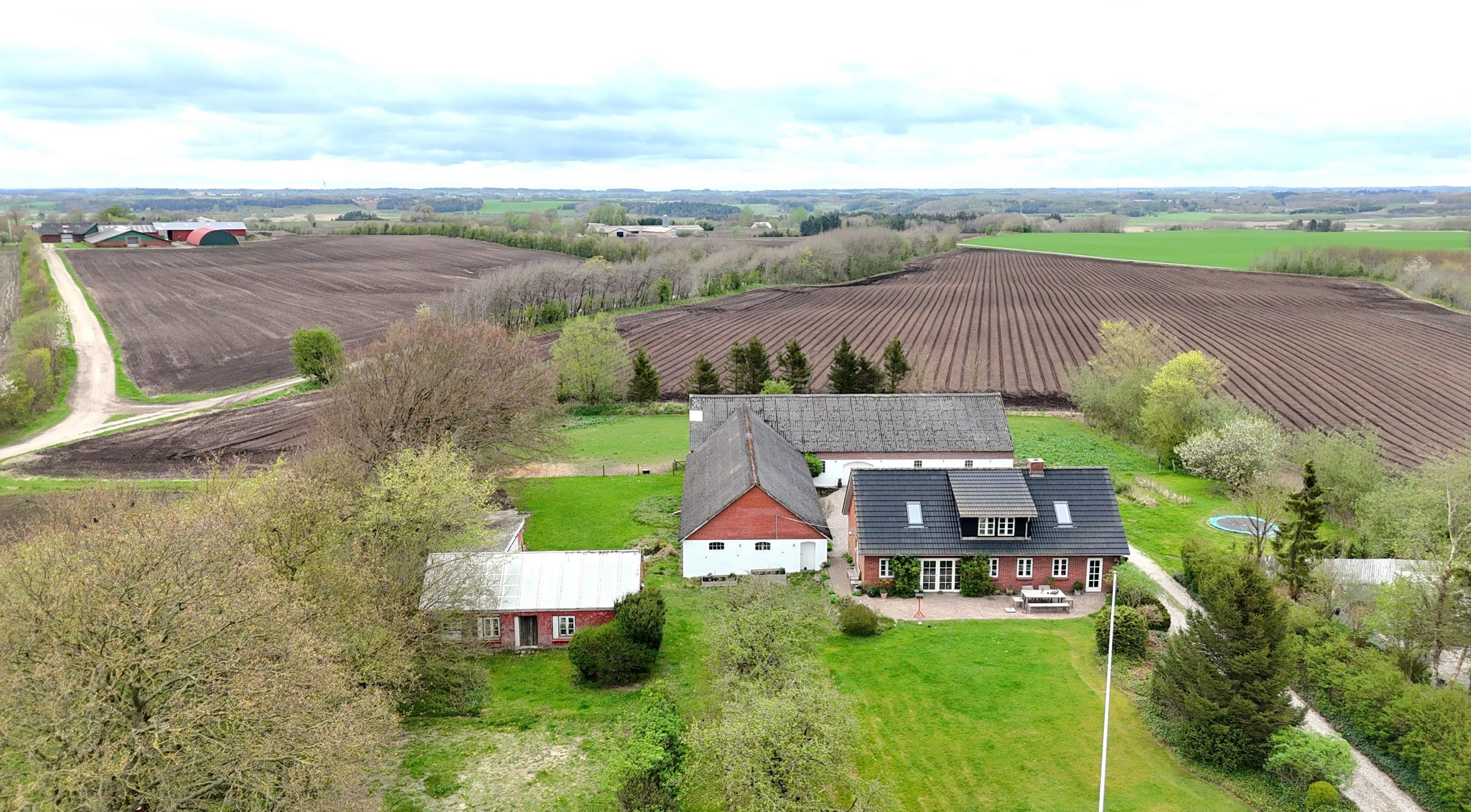 Ejendommen er opført i 1900, men er gennem årene moderniseret med respekt for det oprindelige, og fremstår i dag, yderst charmerende og meget velholdt! Ejendommen består af et stuehus på 175 m2 bolig + 30 m2 kælder, 532 m2 udhuse og et jordstykke på hele 23.743 m2, der ligger rundt om ejendommen. Ejendommen opvarmes med jordvarme (2007) og er fremtidsikret mod klimaforandringer. Den høje placering – 55 meter over havets overflade – sikrer ejendommen mod risiko for oversvømmelser og giver samtidig en fantastisk, fri udsigt over det omkringliggende landskab året rundt.