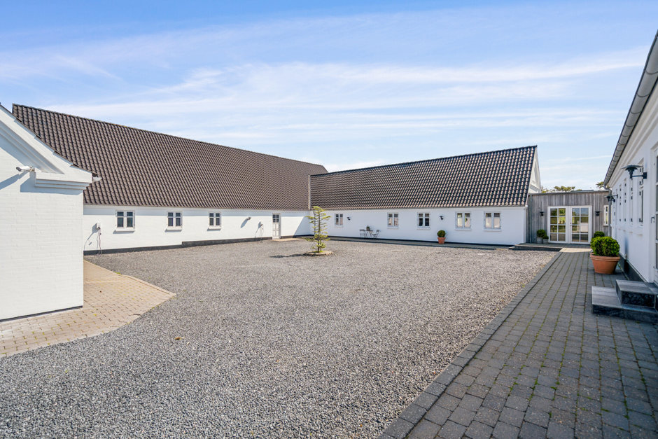 Velkommen til en helt særlig liebhaverejendom, hvor bolig, erhverv og fritid forenes i smukke, harmoniske rammer. Ejendommen er beliggende i fredelige og naturskønne omgivelser med vid udsigt over det åbne landskab – og samtidig kun 2 kilometer fra skole og byens faciliteter. Her får du et gennemført og stilrent hjem med moderne komfort, stor fleksibilitet og et væld af muligheder, både privat og professionelt.