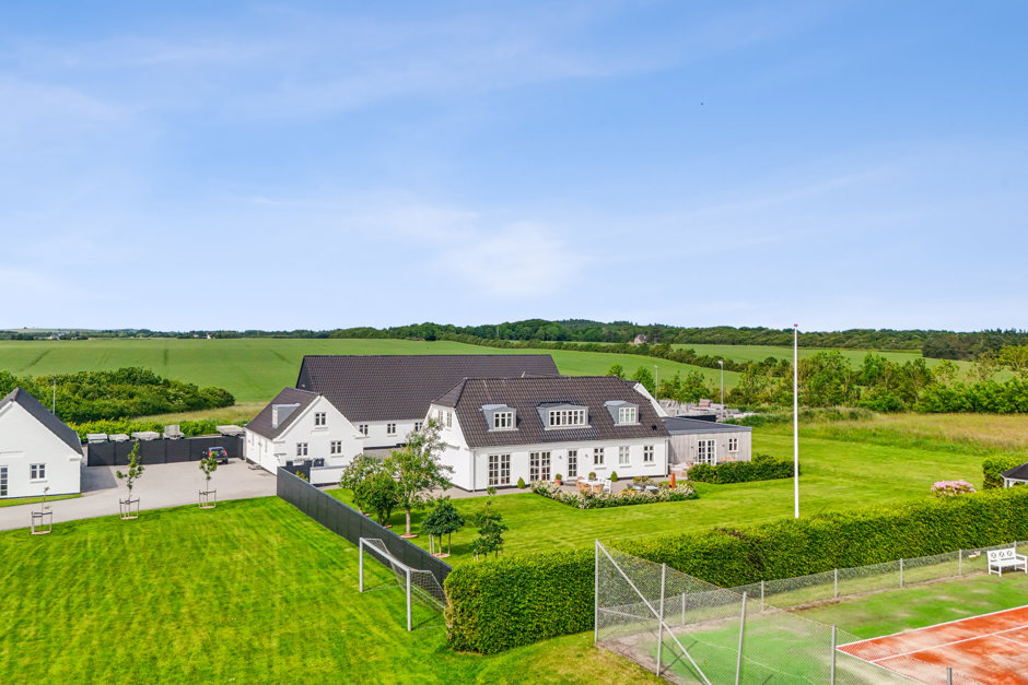 Udenfor venter hele tre hektar jord, som giver rig mulighed for at nyde naturen i fred og ro – eller for hobbylandbrug, hestehold og større aktiviteter. Her finder man også en privat tennisbane, fodboldbane og velanlagt have, som tilsammen skaber en helt særlig helhed og livskvalitet.