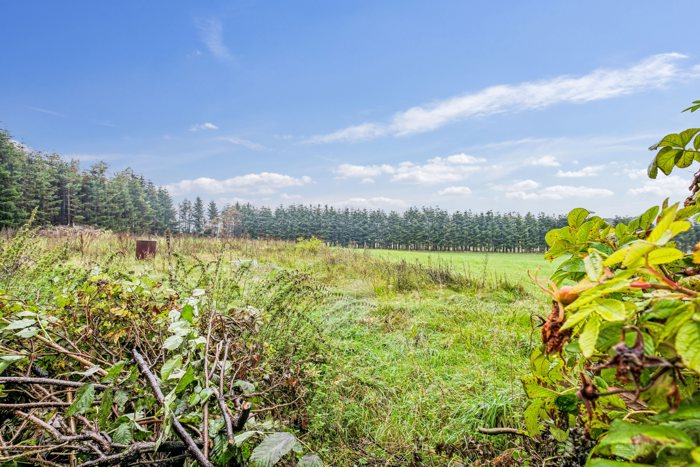 Ejendommen er placeret på hele 2,3 hektar jord, som veksler mellem åbne græsarealer og skov. Her er der rig mulighed for at skabe sit eget fristed i naturen – uanset om drømmen er lange gåture blandt træerne, udeliv med familien, dyrehold i mindre skala eller blot følelsen af at have god plads omkring sig. De åbne arealer indbyder til ophold i solen, mens skoven giver læ og fornemmelsen af at være fuldstændig ugeneret.
