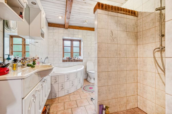 Boligen fremstår med masser af sjæl og karakter. De synlige bjælker og den klassiske byggestil vidner om ejendommens historie og giver hjemmet en varm og autentisk atmosfære. Samtidig er der tænkt på nutidens komfort, så du får det bedste fra begge verdener. Jordvarmeanlægget sikrer en energieffektiv opvarmning, og brændeovnen bidrager med både varme og hygge i de kolde måneder – perfekt til rolige aftener med ildens knitren som baggrund.