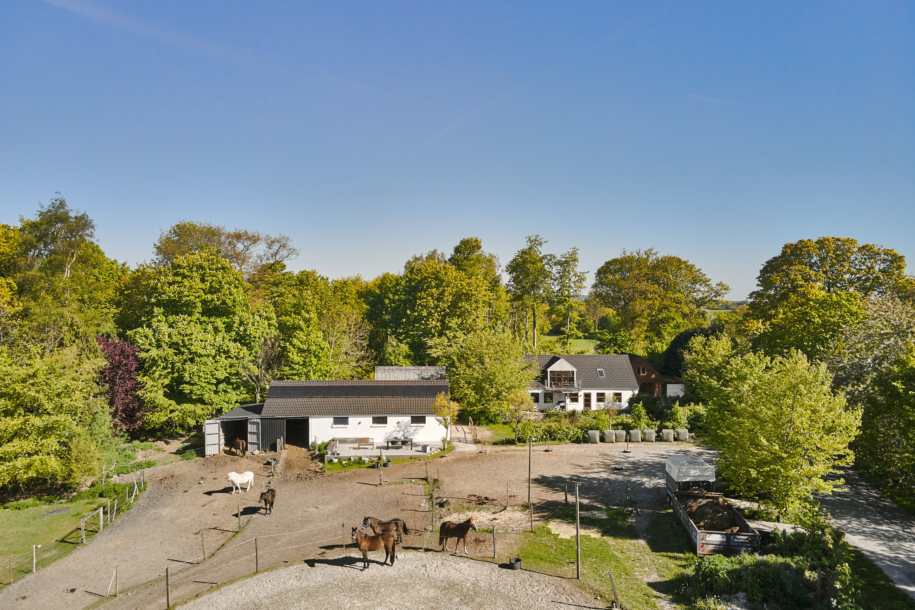 Her får I et charmerende og moderne landsted, hvor historien møder nutiden i smuk harmoni. Hovedhuset blev opført i 1890, men blev gennemgribende renoveret i 2004, så det i dag fremstår lyst, stilrent og funktionelt. Ejendommen ligger på en grund på omkring 5 tønder land, som byder på alt, hvad heste- og naturentusiaster kan ønske sig – herunder en stald med plads til fem heste, ridebane og folde, alt sammen omgivet af grønne marker og rolige omgivelser.