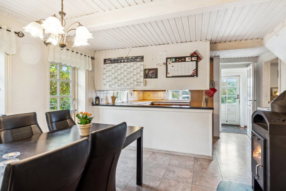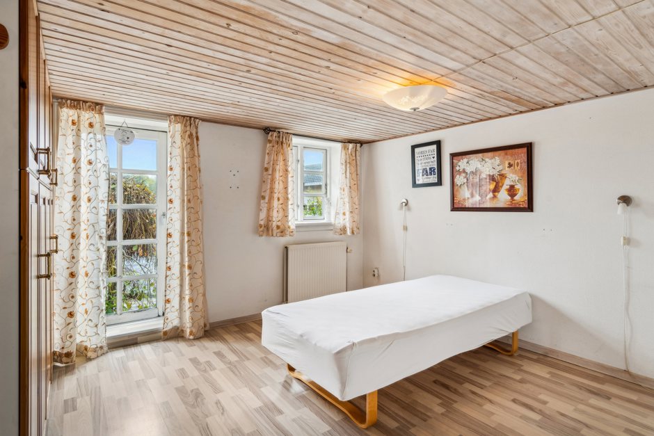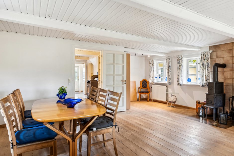 Plads er også et nøgleord i stuehuset, hvor boligen folder sig ud med hele 316 m2 fordelt over to etager. Over årene er der både renoveret og vedligeholdt, så I får et godt udgangspunkt for at skabe det hjem, I drømmer om – og blotlagte bjælker i stueplan tilfører charme og sætter prikken over i’et.