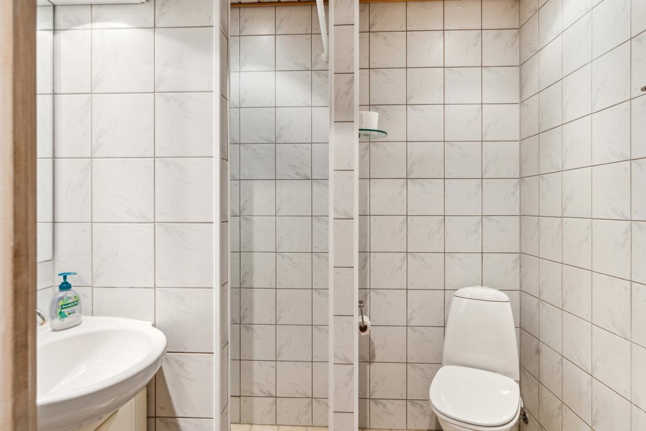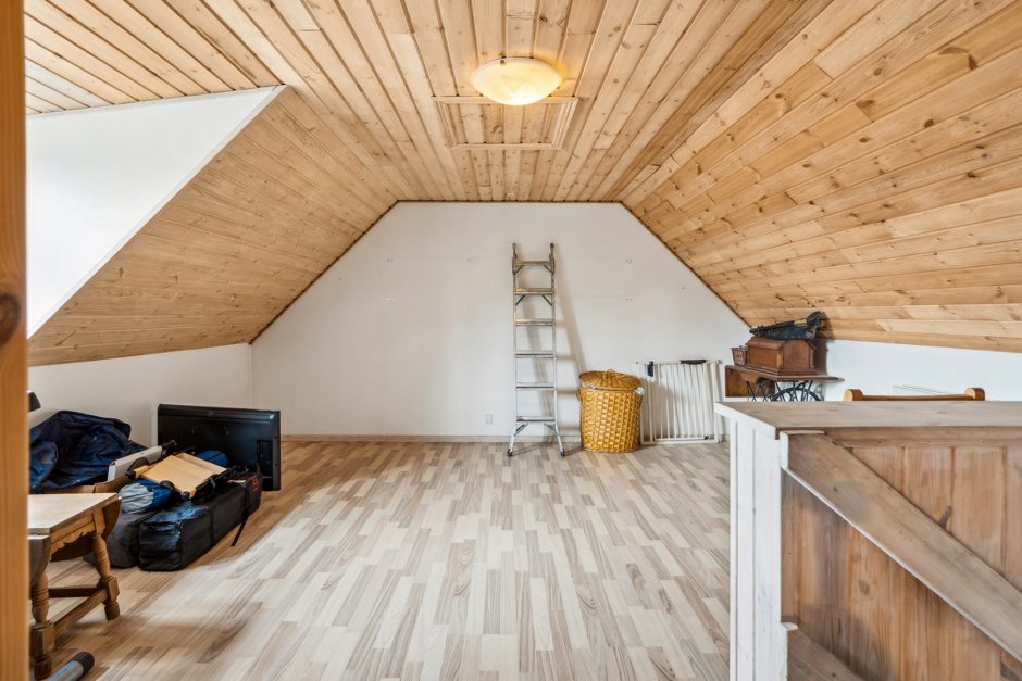 Der er trapper op til to separate afdelinger på førstesalen, hvor I kan indrette flere dejlige værelser med udsigt over naturen – og den grønne udsigt følger også med jer ned i stueplan, hvor I bl.a. finder endnu et værelse, hele tre badeværelser, en stor stue og et hyggeligt køkken-alrum med en brændeovn, der spreder varme. Som endnu et plus får I en stor gildesal med tekøkken og rigelig plads til de fremtidige fester.