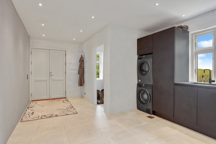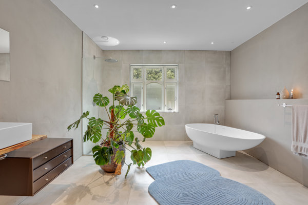 Indvendigt er huset moderniseret fra A-Z uden kompromiser på hverken kvalitet eller materialevalg. Et stort, funktionelt bryggers giver dig masser af opbevaringsplads, og stueetagens store, luksuriøse badeværelse med både kar og brus sikrer komfort og elegance i hverdagen.