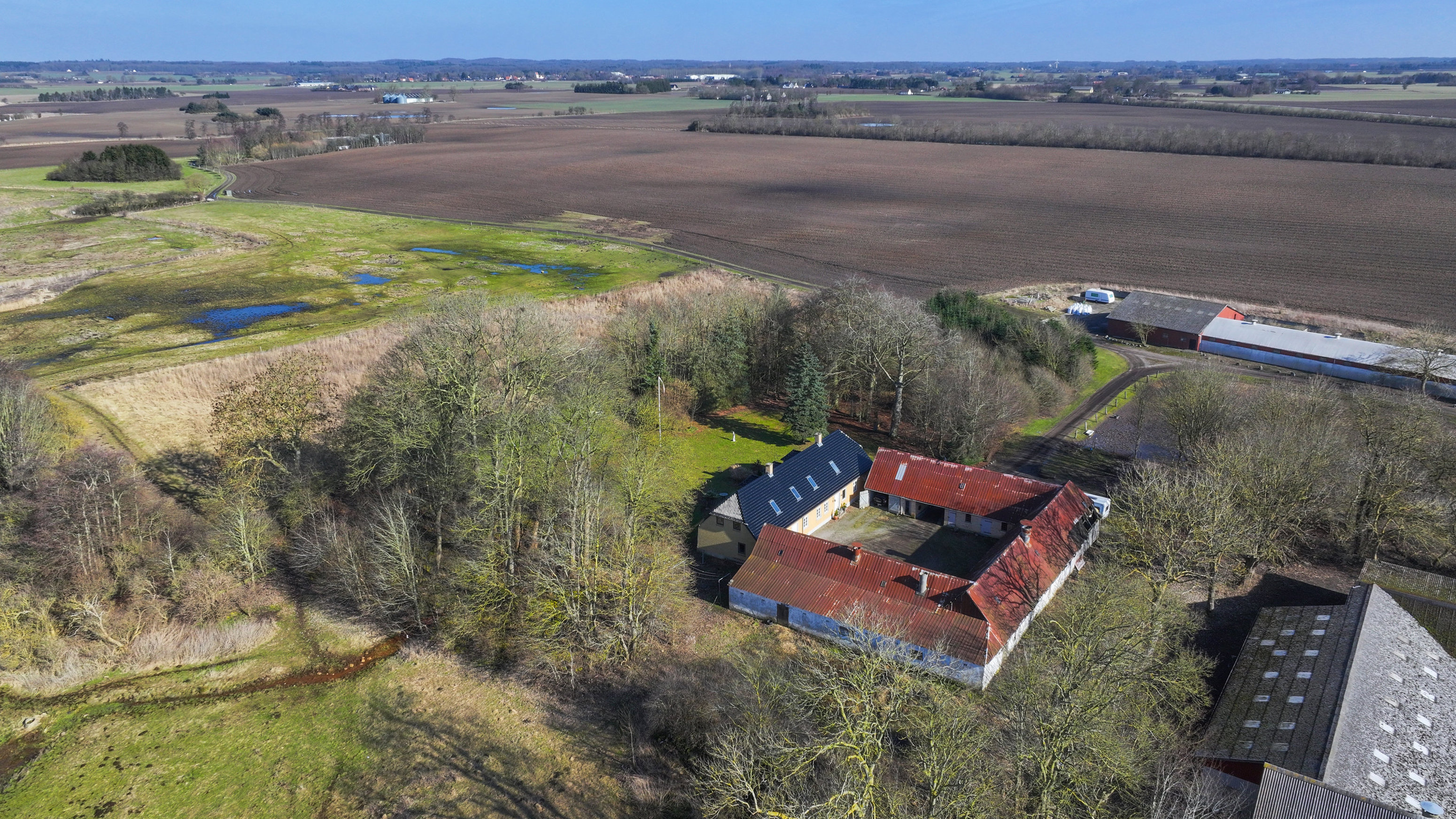 De tilhørende længer er beliggende i et U omkring boligen, hvilket giver en idyllisk fornemmelse.