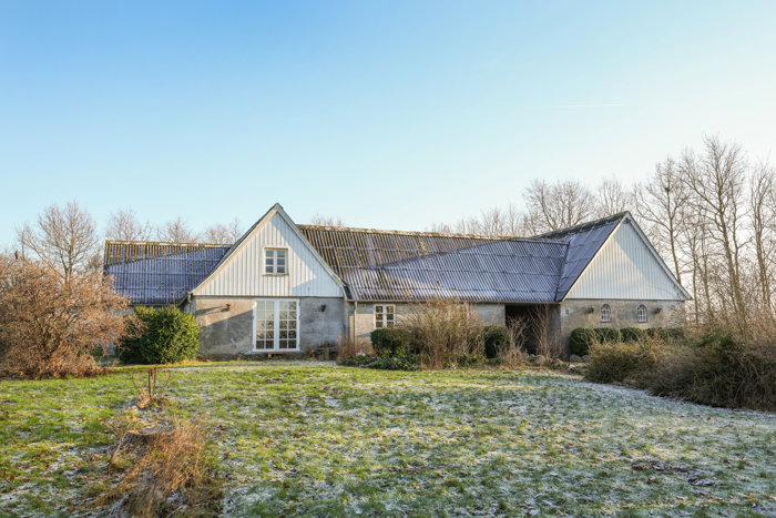 Ad snoede grusveje når du frem til denne stemningsfulde bondegård, der ligger ugeneret for enden af vejen. De fire længer slutter sig smukt om gårdspladsen og skaber en indbydende og harmonisk helhed med masser af landlig charme.