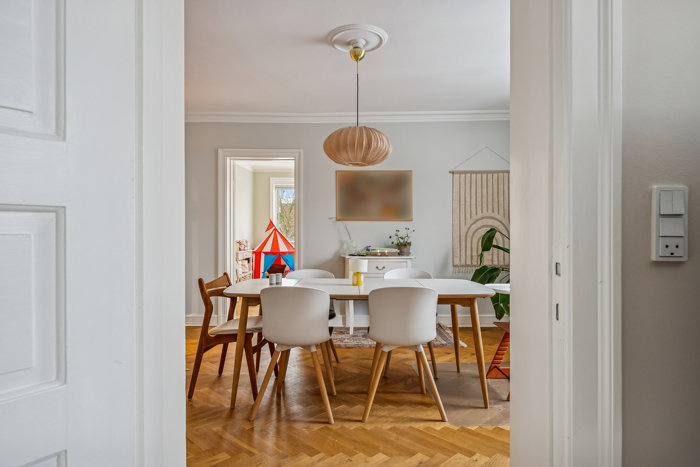 Nu har vi glæden af at udbyde en lejlighed, der er som skræddersyet til den byglade børnefamilie – eller til parret, der vil have rigeligt med plads. Her får I to stuer og tre rummelige værelser at indrette jer på, mens sildebensparket og stuk sørger for charme og herskabelige fornemmelser. Det hele i gåafstand fra skole, sportshaller og S-tog, i kort cykelafstand fra Valby centrum og i lidt længere cykelafstand fra Indre By.