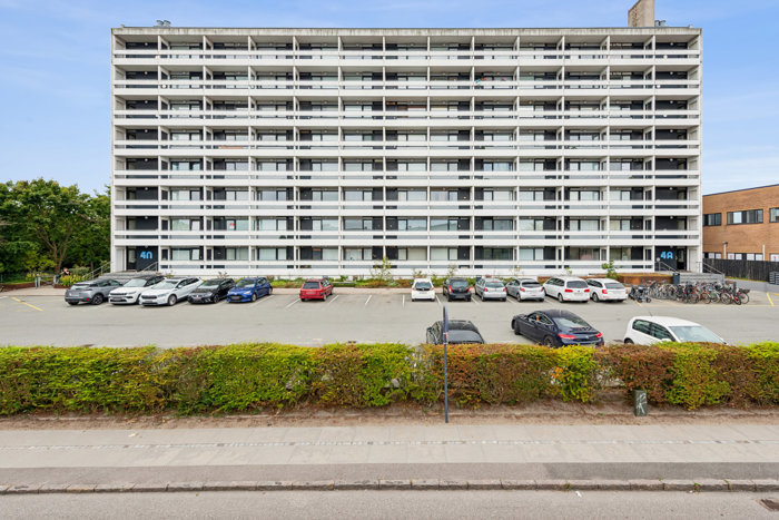 praktiske fællesfaciliteter som cykelkælder, fælles vaskeri, elevator samt gode parkeringsmuligheder. Med sin tidstypiske arkitektur og velholdte facade er ejendommen en tryg og stabil ramme om dit nye hjem. Foreningen byder på flere fælles grønne områder med plads til sjov og afslapning, hvor der er etableret et godt terrassemiljø med grill, borde og bænke, som beboerne frit kan benytte sig af.