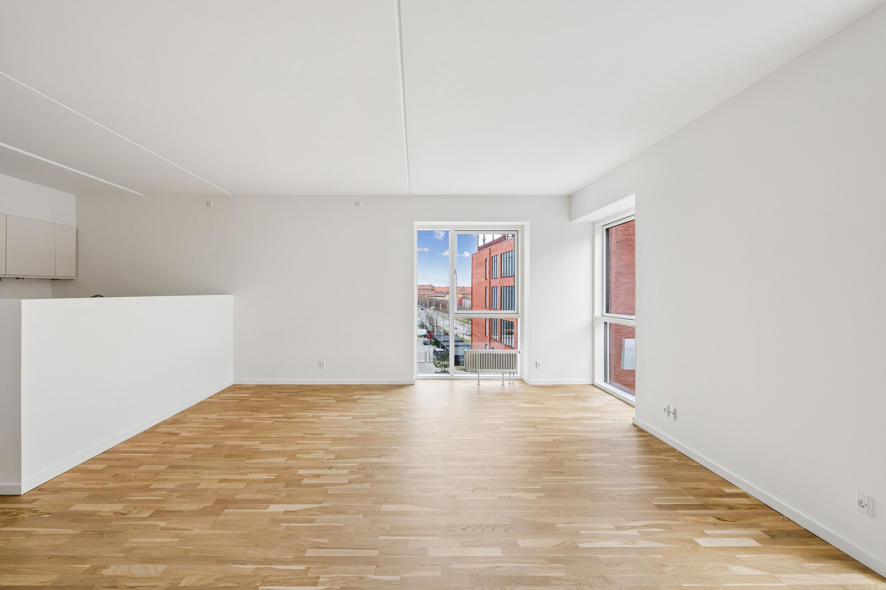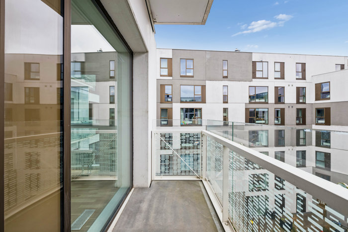 I 2018 stod ejendommen færdig, og med byggeåret er I lovet masser af moderne komfort. Bygningen indrammer et stort gårdmiljø med grønt til øjet, gyngestativ og cykelparkering, og I får som nævnt også jeres helt eget uderum ude på altanen, hvor I kan fange dagens sidste solstråler og indrette med bord, stole og blomsterkrukker.