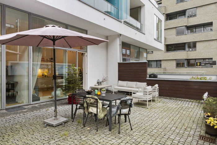 På eftertragtede Amerika Plads på Østerbro finder du denne indbydende stuelejlighed med en gennemtænkt planløsning og en sjældent udbudt, stor privat terrasse.