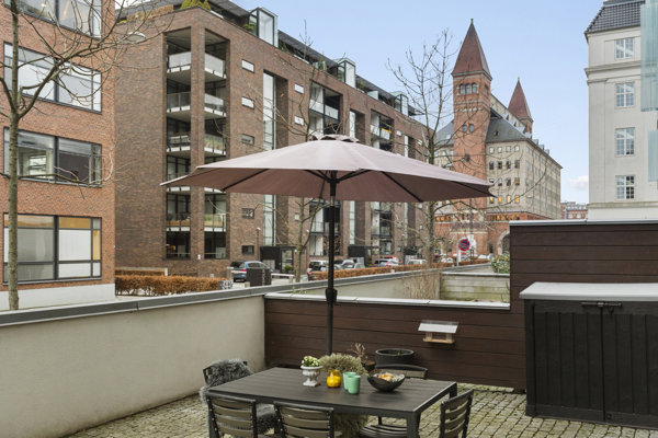Moderne og velindrettet lejlighed med stor privat terrasse på attraktive Amerika Plads