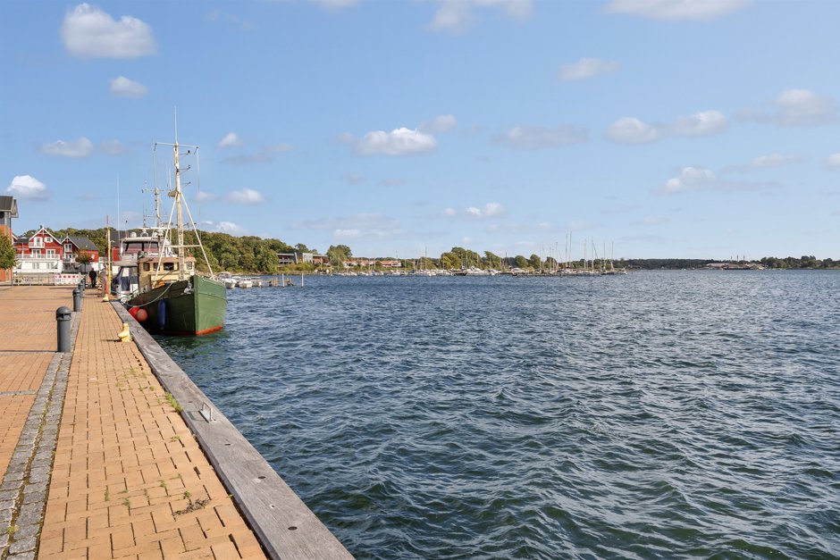 Ejendommen ligger direkte på havnen i Gråsten, så du kan nyde udsigten over vandet og følge livet på havnen fra første parket.