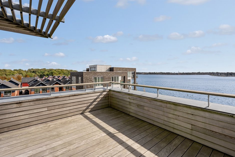 Her får du en fuldstændig privat, kompromisløs penthouselejlighed med en af de mest spektakulære udsigter i Gråsten.