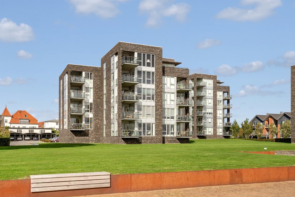 På toppen af det smukke ejerlejlighedskompleks på Bellevue 2 finder du lejlighed nr. 13 – den eneste på hele øverste etage.
