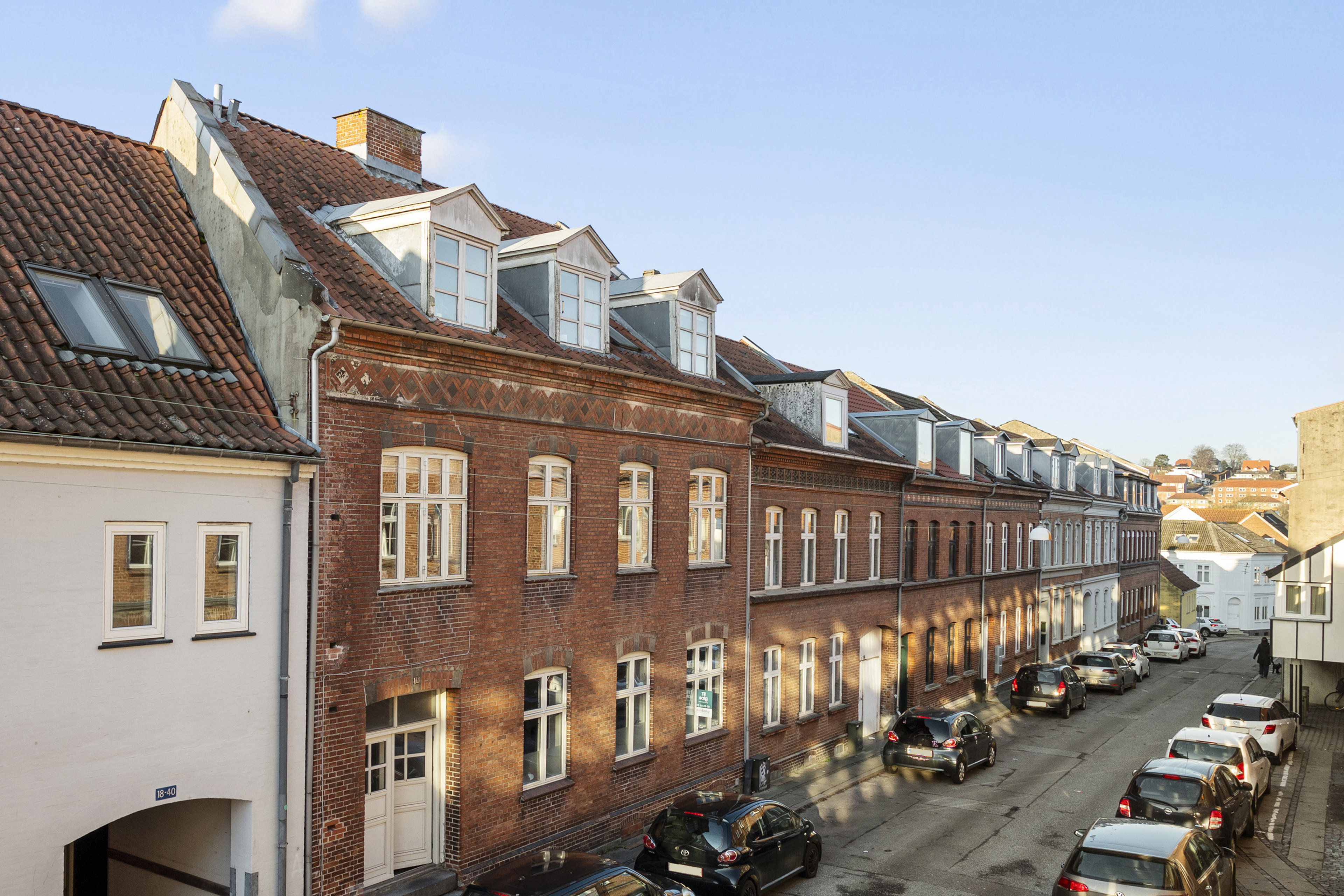 Boligen ligger i et af de mest efterspurgte områder af byen, hvor du har alt inden for behagelig gåafstand. Koldings pulserende centrum med caféer, specialbutikker og dagligvareindkøb ligger tæt ved, og byens hyggelige gågader inviterer til både hverdagens indkøb og weekendens oplevelser. De historiske omgivelser og de levende byrum giver en unik kombination af byliv og ro. Du er få skridt fra et rigt udvalg af restauranter og kulturoplevelser, samtidig med at byens mange handlemuligheder gør hverdagen nem.