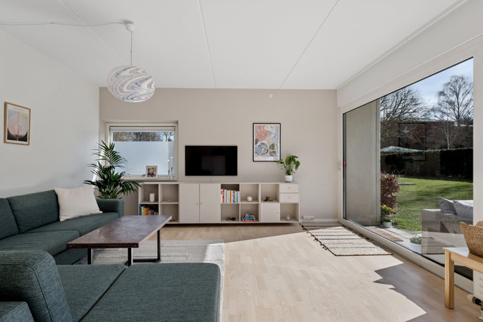Lejligheden er beliggende i stueetagen med nem og bekvem adgang, og fra dagligstuen har du en skøn, grøn udsigt, der bidrager til en rolig og behagelig atmosfære. Ejendommen byder desuden på gode parkeringsforhold samt cykelparkering, hvilket gør hverdagen både nem og praktisk.