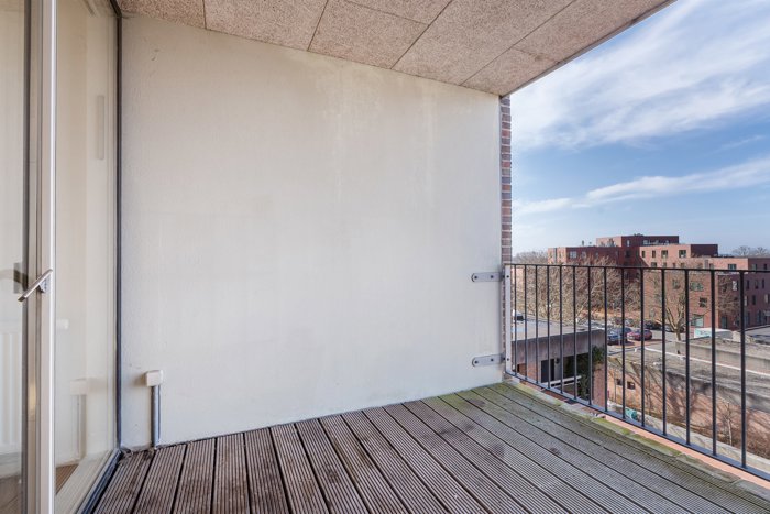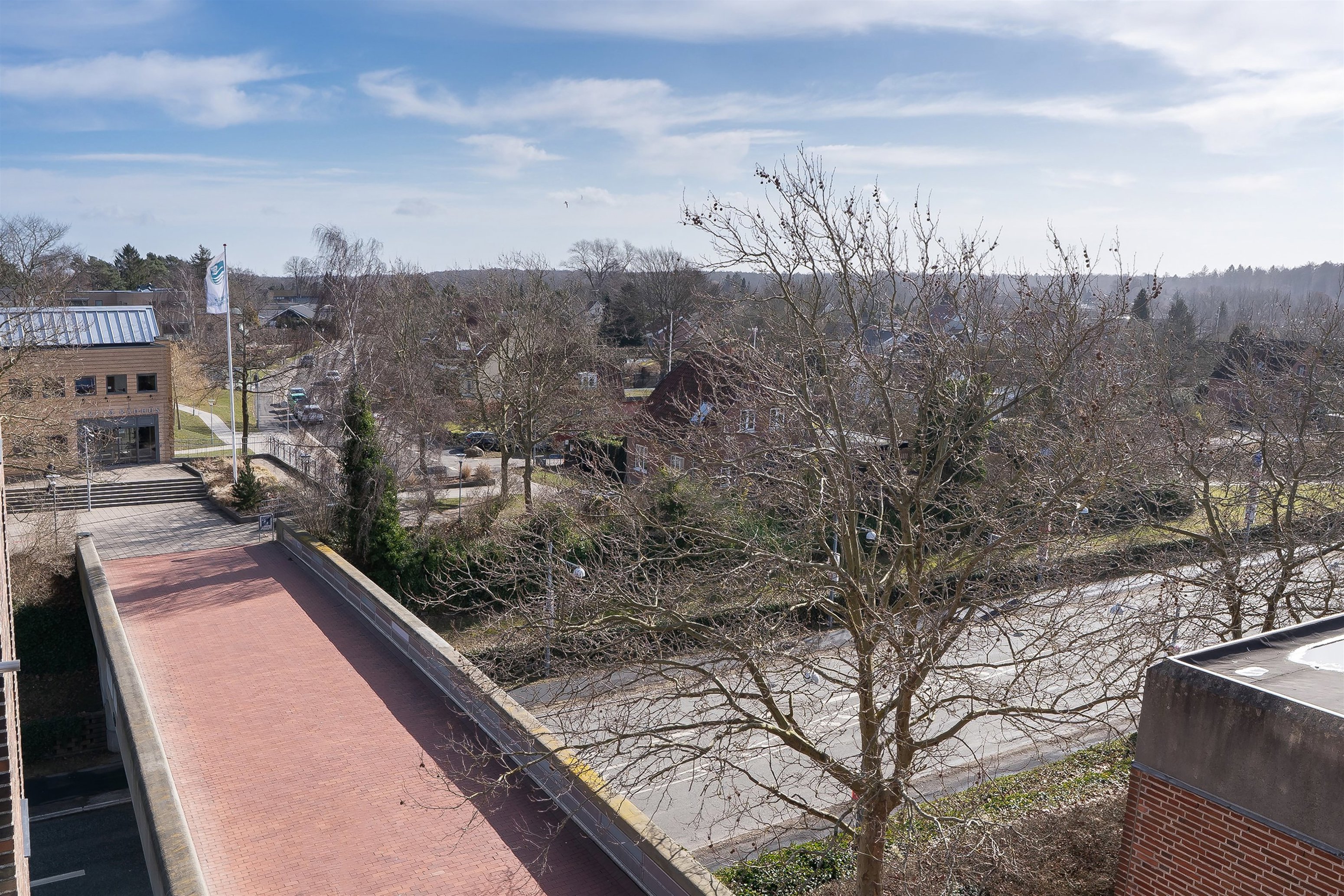 Lejligheden er orienteret mod syd og vest, hvilket giver et fantastisk lysindfald gennem de store vinduespartier. Herfra kan du følge livet i bymidten – og samtidig nyde en storslået udsigt, der strækker sig helt fra Hareskoven til Roskilde på en klar dag.