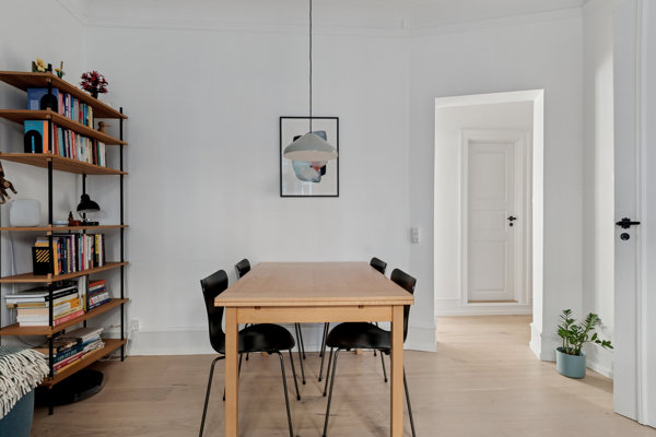 Planløsningen er enkel, men også fleksibel. Entré og fordelingsgang forbinder alle rum, der tæller badeværelse, soveværelse, køkken og to stuer en suite. Soveværelset har god plads til både dobbeltseng og et arbejdsbord eller en barneseng, og de to stuer kan I indrette til spise- og sofastue, eller I kan omdanne det ene rum til kontor eller børneværelse. Hjemmets praktiske faciliteter er desuden i top: Det flotte flisebadeværelse har separat brus og rainshower, mens det nydelige køkken kommer med både opvaskemaskine og vaskemaskine.