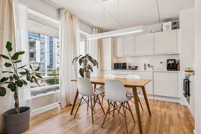 Ørestad er en moderne bydel på kanten af naturen. Her bor I med Byparken som nabo og Fælleden lige over gaden, samtidig med at I kan shoppe i Field’s, besøge områdets restauranter, tage en tur i fitness og nyde godt af flere indkøbsmuligheder inden for kort afstand. Nærmeste metrostop har I desuden 750 meter væk, og efter blot ni minutter står I midt på Kongens Nytorv. Ja, hverdagen bliver umiskendeligt nem, fleksibel og fuld af muligheder her i Ørestad – uanset om I prioriterer natur, byliv eller lidt af det hele.