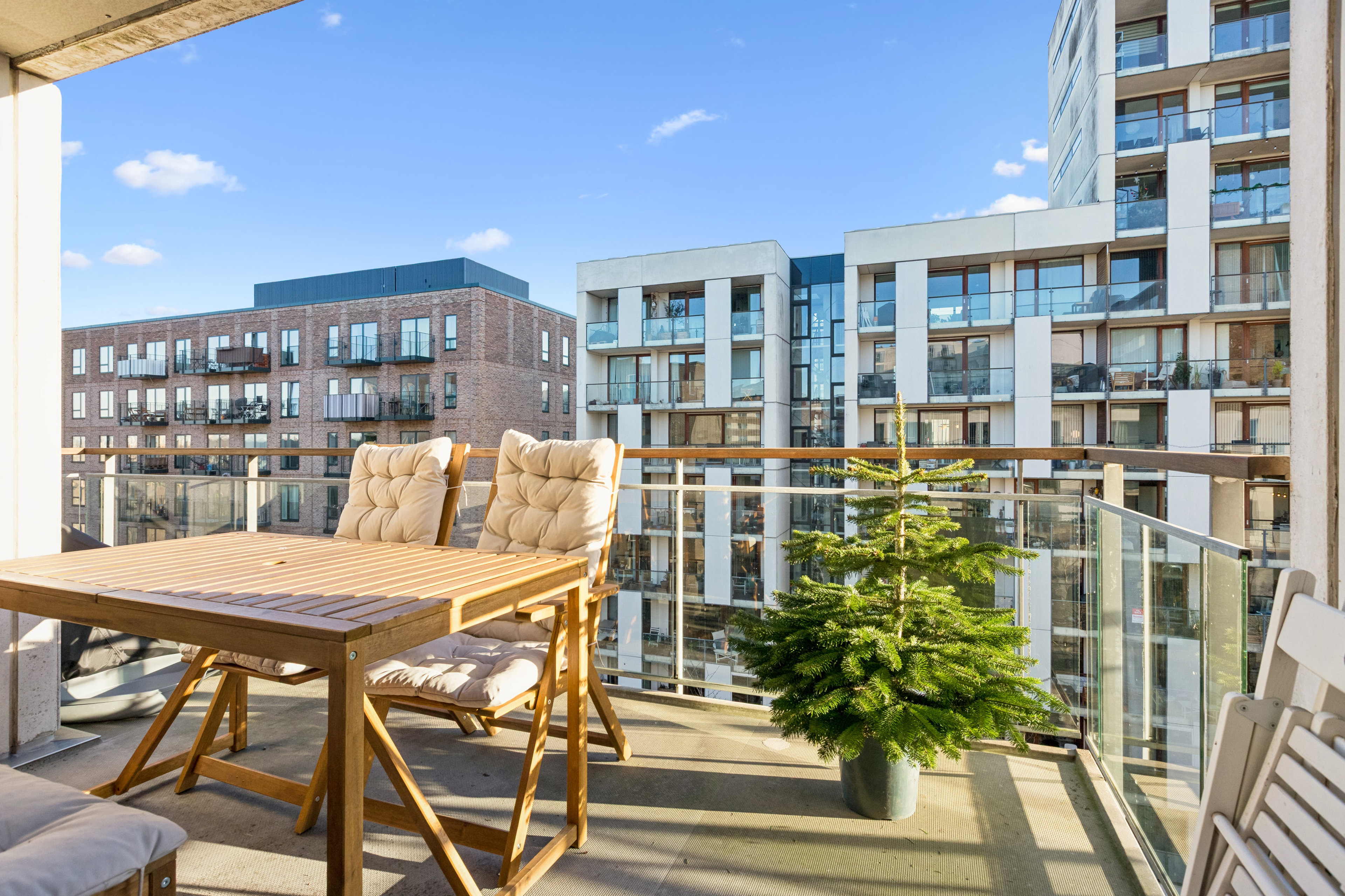 I skal øverst i en ejendom fra 2007, hvilket vil sige masser af sol og skønt kig ud over jeres kommende nærmiljø. Lejligheden forkæler tilmed med hele to altaner: Den ene vender mod øst, den anden mod vest, så I kan følge solen fra morgen til aften, alt imens Byparken nedenfor skaber en grøn og rolig ramme om hverdagen. Som om det ikke var nok, kan I også glæde jer over en fælles tagterrasse i foreningen.