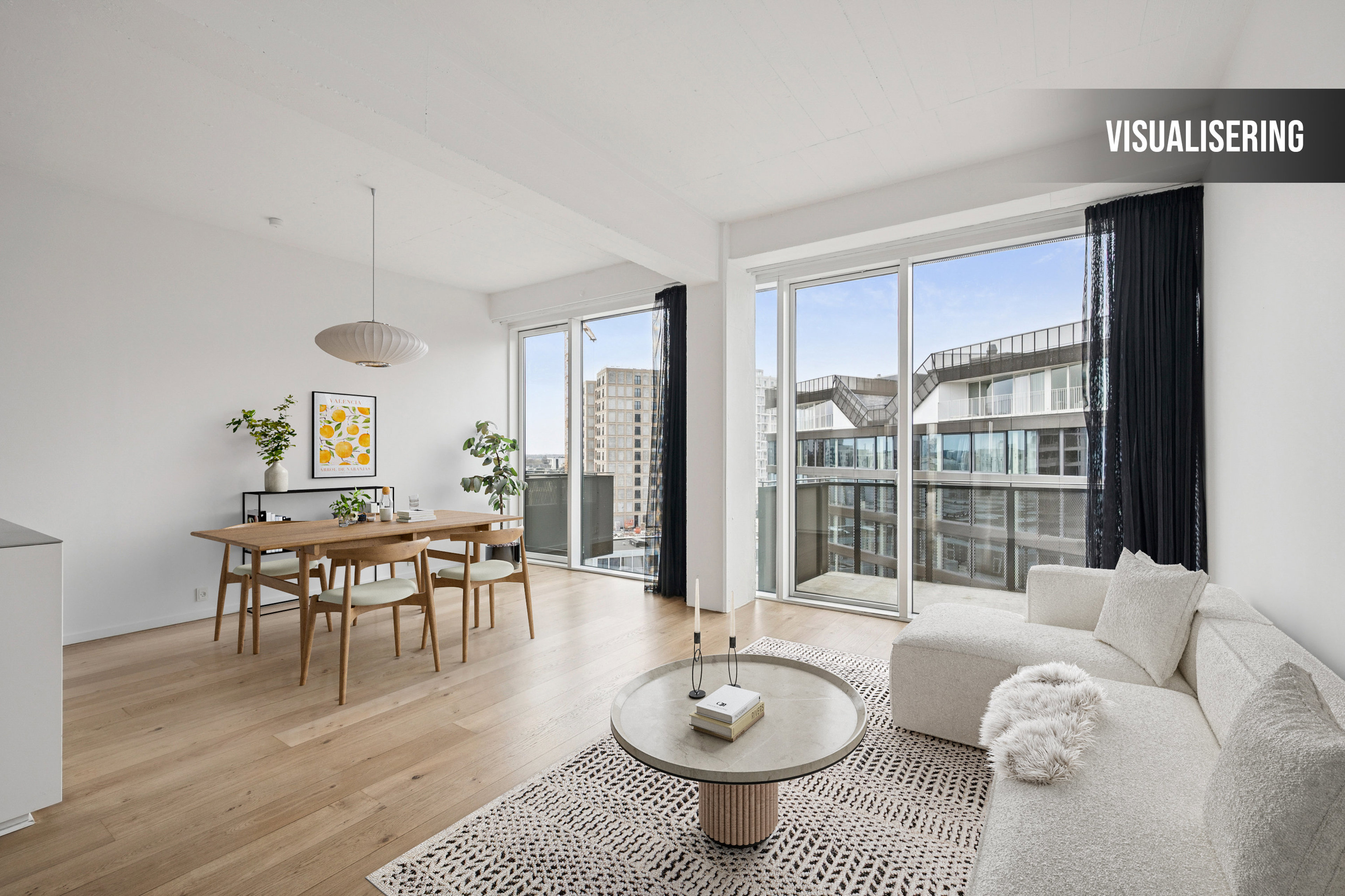 af med udsigt over byens pulserende liv. Det åbne køkken-alrum bliver hurtigt hjemmets hjerte – her kan
