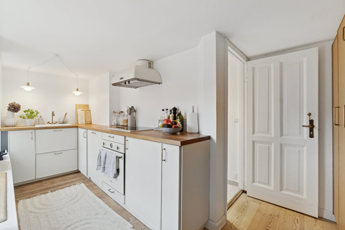 Køkkenet er lækkert og funktionelt – stilrent med god bordplads, hvor både den hurtige morgenkaffe og den store middag kan tilberedes med lethed. Badeværelset er moderne og smagfuldt indrettet med separat bruseniche og god opbevaringsplads. I soveværelset er der masser af skabsplads, så både hverdag og weekendgarderobe kan finde sin plads uden besvær.